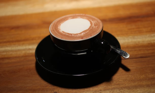 A typical drink from Kopinarak which is made using selected ingredients in the form of Arabica and Robusta coffee mixed with milk and red velvet flavoring